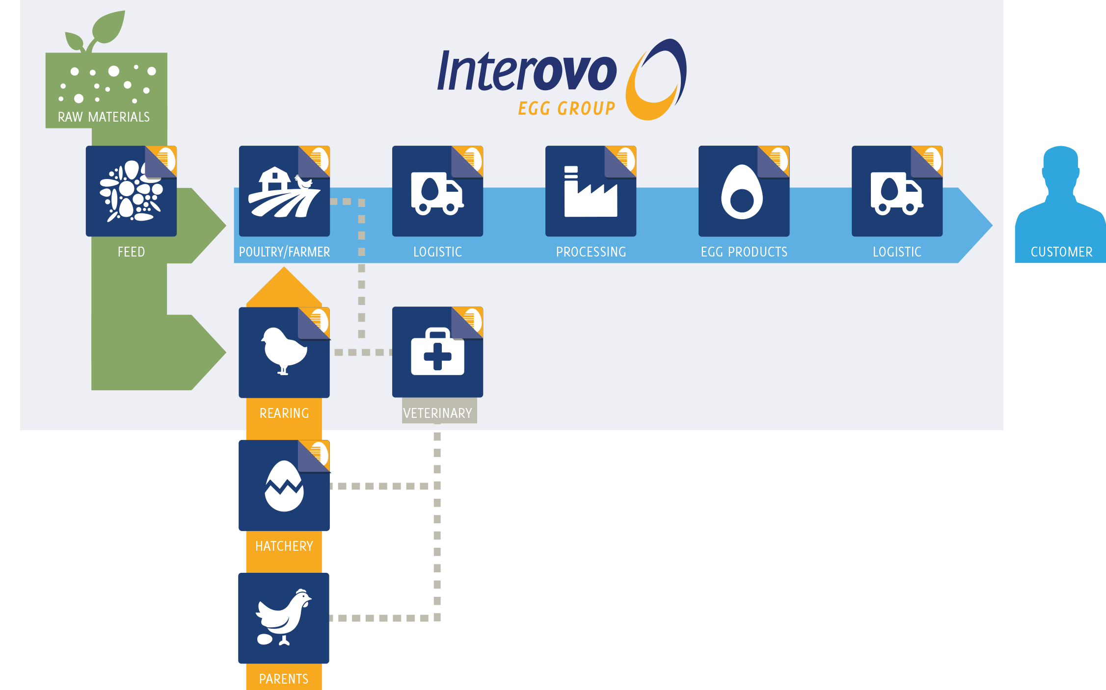 Voor de traceerbaarheid van de producten hanteren alle ondernemingen het EggTraceBase® systeem. EggTraceBase® is al sinds jaren in gebruik binnen de bedrijven Interovo Egg Group. Door de integratie van schakels in de keten hebben de ondernemingen en de klanten altijd de garantie op een veilig en traceerbaar product.